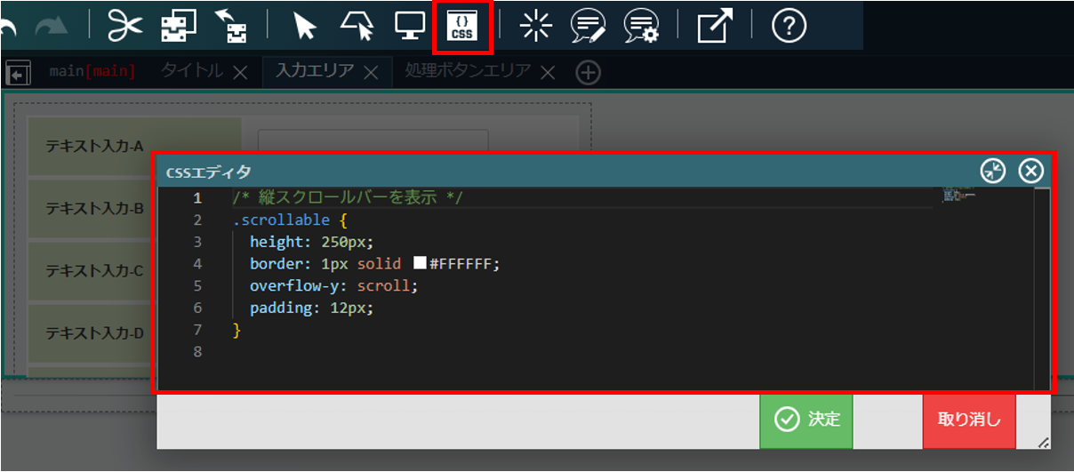 ・CSSエディタ画面にて、利用するスタイルシートの設定内容を書き込む