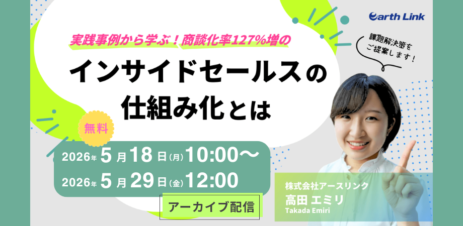 | タイトル | 【アーカイブ配信のお知らせ】実践事例に学ぶ !商談化率127%増のインサイドセールスの仕組み化とは |